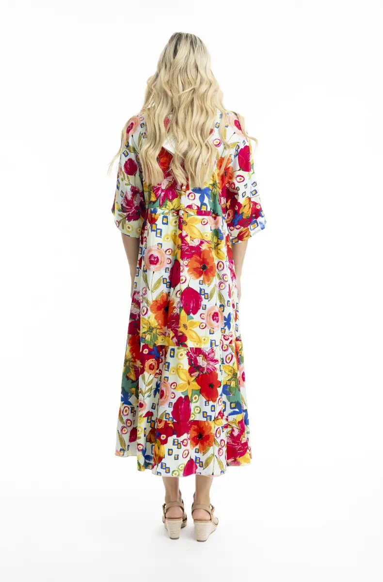 Orientique La Pelosa V Neckline Trim Maxi Dress